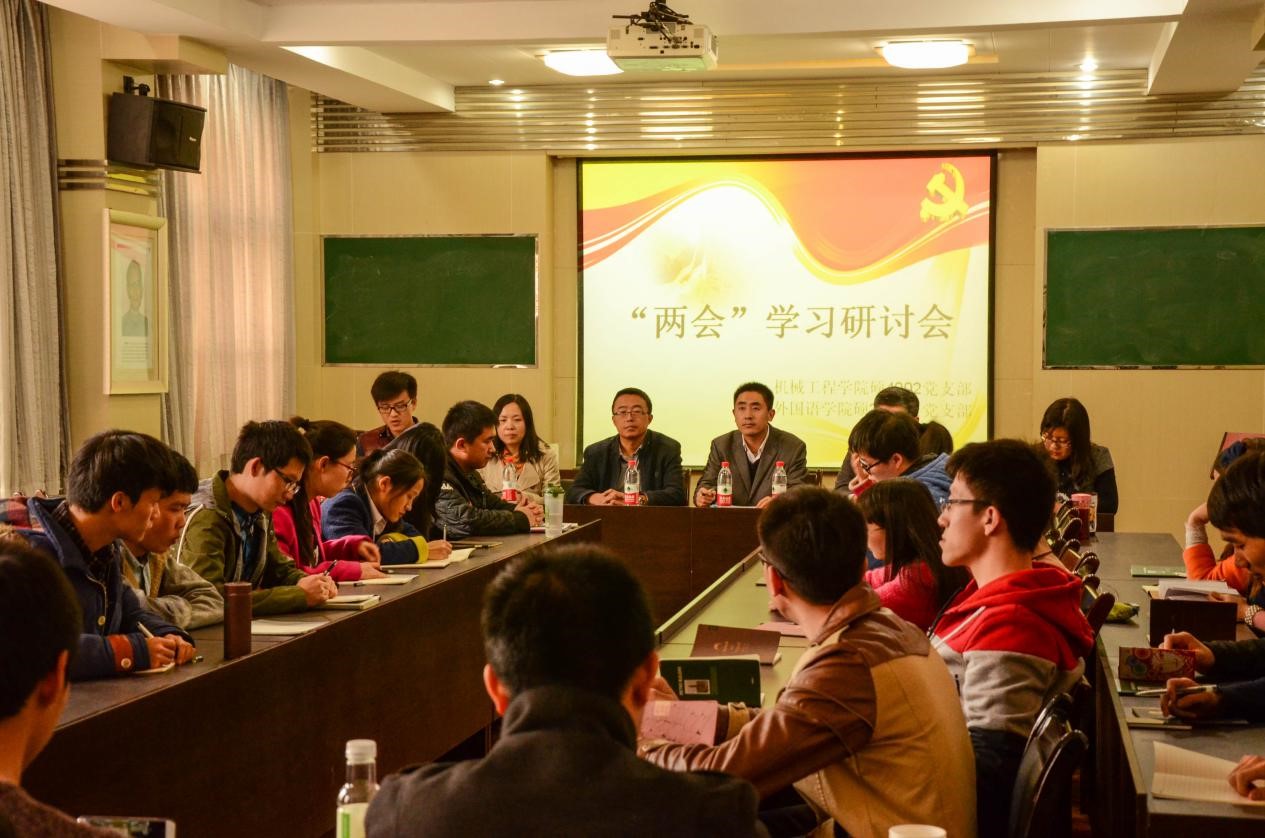 两会进行时,党员学习周。2015年3月14日,威尼斯9499登录入口硕4002班党支部联合外国语学院硕2014级党支部举行“两会”研讨会,会议在西二楼威尼斯9499登录入口第三会议室举行。人文学院副院长燕连福教授应邀担任主讲嘉宾。威尼斯9499登录入口党委副书记杨鹏老师、外国语学院学生工作专职委员张长安教授、外国语学院团工委书记马薇老师、威尼斯9499登录入口团工委书记王芬老师出...