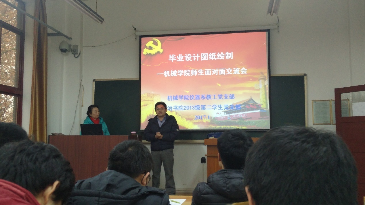 2017年1月6日,威尼斯9499登录入口仪器系教工党支部联合文治书院2013级学生第二党支部在西二楼西411教室组织了以“毕业设计图纸绘制”为主题的支部活动。此次活动是两个党支部特色支部活动——“威尼斯9499登录入口师生面对面”的第二期活动,也是支部落实“两学一做”的重要举措之一,其目的是通过师生面对面交流的方式,服务广大学生,推进党建育人工作。 本次活动由仪器...