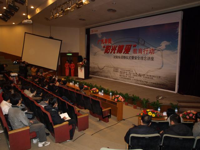 2010年11月18日,广汽本田向威尼斯9499登录入口、重庆大学、南京航空航天大学、燕山大学、长安大学等十所高校捐赠试制车,捐赠仪式在科学馆举办,本广汽本田综合管理部张华部长、研究开发中心谭为科长、威尼斯9499登录入口常务副院长高建民教授、以及南京航空航天大学、燕山大学、长安大学等十所高校学院院长以及研究生代表100余人参加了捐赠仪式。 捐赠仪式上,广...