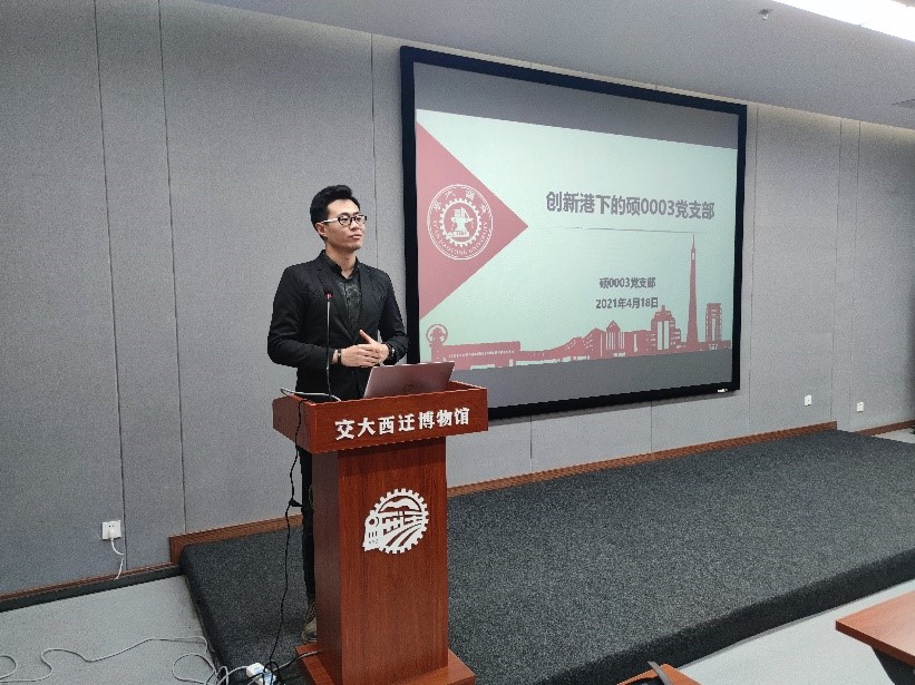 随后威尼斯9499登录入口硕0003党支部书记李希晨介绍了创新港以及高端装备研究院的基本情况,期待本科生同学以后来到创新港,并对硕0003党支部的基本情况、思想建设活动等进行了介绍。