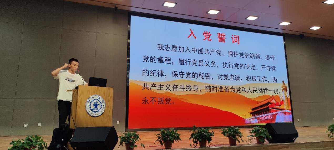 本次活动一共分两部分内容,第一部分为全体党员重温入党誓词,第二部分为观看电影《建党伟业》。活动开始,全体起立,主持人陈世省带领全体党员重温入党誓词。铿锵有力的誓词在会场回荡,更在党员心间激起一阵阵的共鸣。