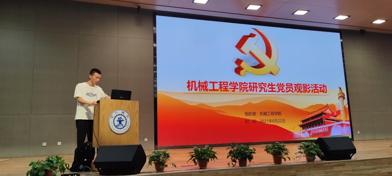 在长达两个小时的观影活动之后,随着电影的结束,会场响起了掌声。大家已然是被革命先烈们大无畏的精神和舍生忘死的勇气给感动了,大家体会到了那种为了民族和人民可以付出一切的真正意义。正是因为有这种勇气和毅力,中国共产党才能诞生,中国的命运才得到了转折,中华民族才不至于被灭亡。在这个新的时代,作为一名党员应该谨记先辈们的忘我精神,将自己的一腔热血投入到为祖国建设的伟大事业中去。如今的环境相比于过去已经是天壤之别了,我们交大研究生一定要为中华民族伟大复兴作出自己的贡献。