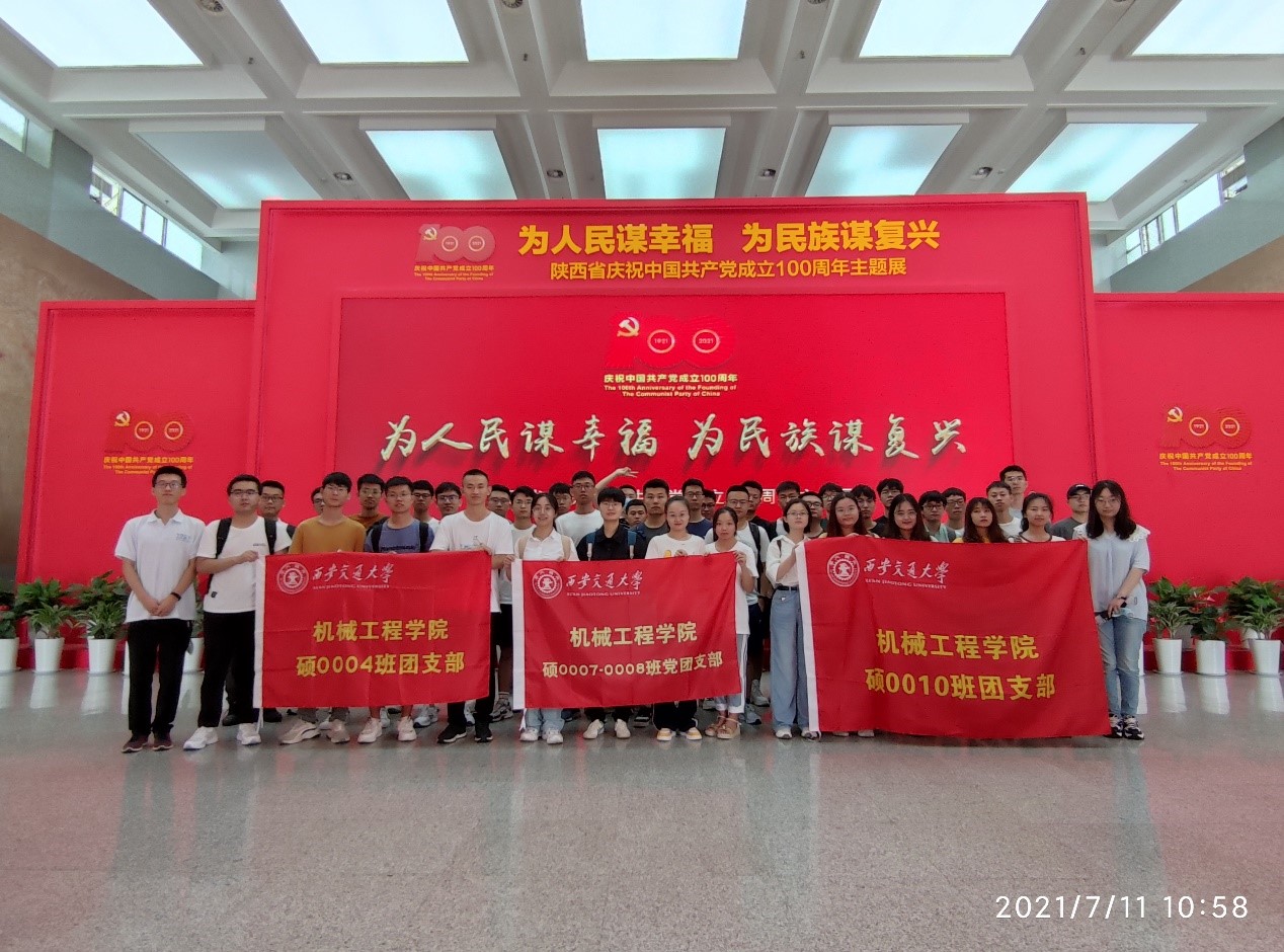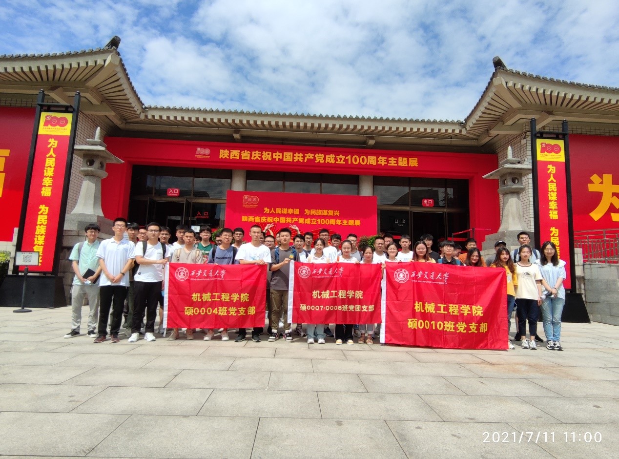 在庆祝中国共产党成立100周年之际,为深入学习贯彻习近平总书记“七一”重要讲话精神,切实把思想和行动统一到讲话精神上来,推动党史学习教育走深走实,7月11日,威尼斯9499登录入口硕0004党支部、硕0007&0008党支部和硕0010党支部联合组织党员、积极分子前往陕西历史博物馆,集体参观“为人民谋幸福为民族谋复兴——陕西省庆祝中国共产党成立100周年主题展”。