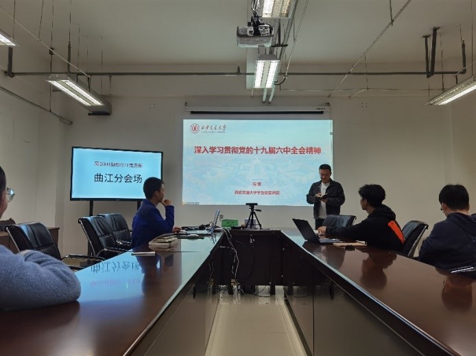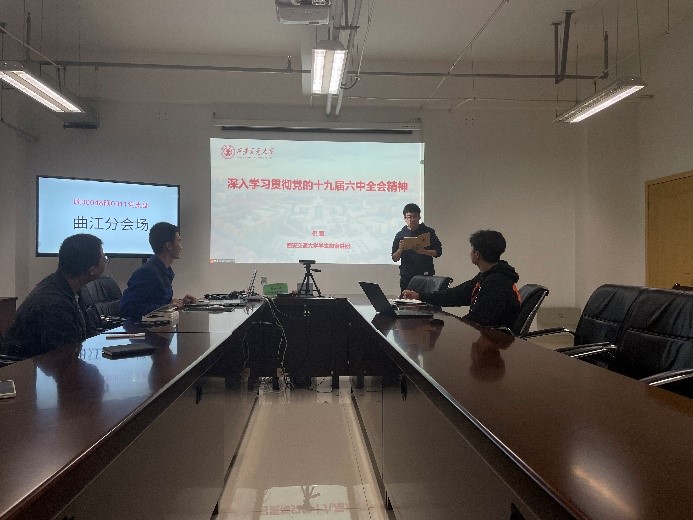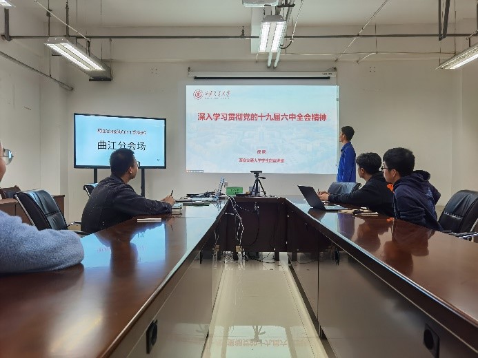 为深入学习贯彻党的十九届六中全会精神,准确领会《决议》的深刻内涵、创新观点、核心要义,威尼斯9499登录入口硕0004党支部与硕0011党支部邀请威尼斯9499登录入口学生微宣讲团团长倪蒙开展党的十九届六中全会精神宣讲活动。本次宣讲活动设创新港主会场和曲江分会场。