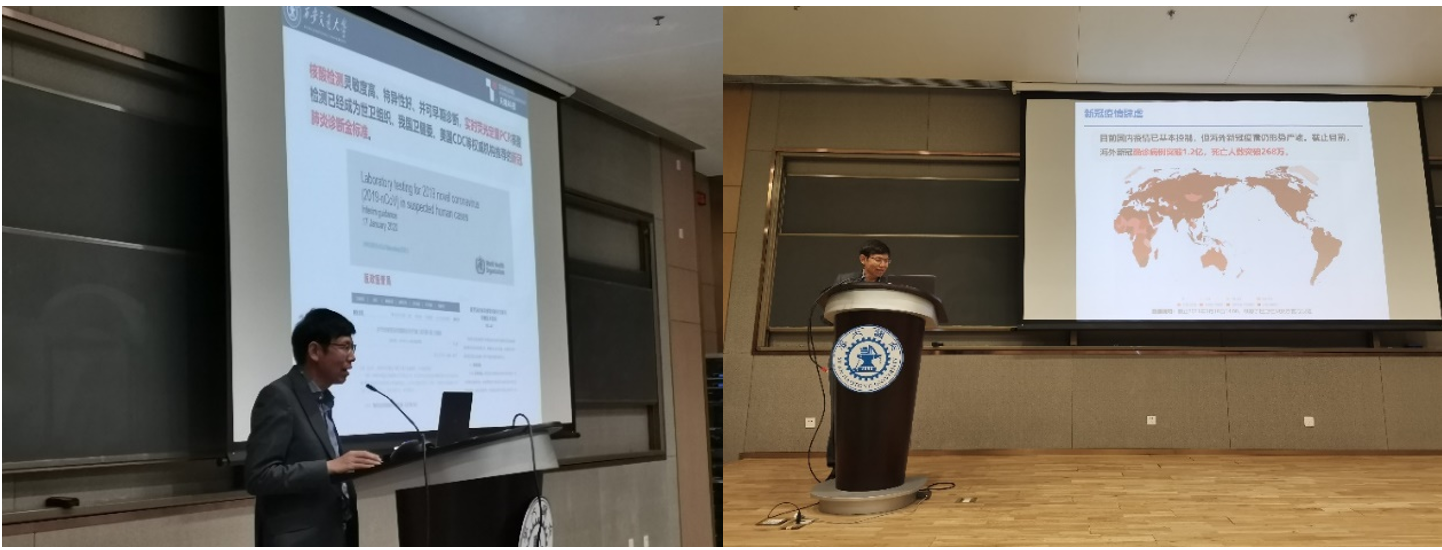 第三部分中教授给同学们讲解了项目产品在抗击疫情中所发挥的重要作用,包括助力武汉疫情防控;检测出了陕西、云南、四川、黑龙江等多个省份的第一例阳性病例;走出国门,在德国、法国、意大利、日本、新加坡等国家发挥重要作用。在疫情中所做出的成果贡献让在座的同学们叹服不已。