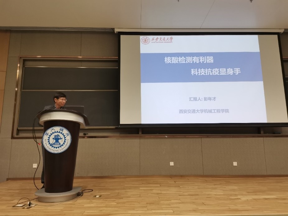 3月19日晚,在中国西部科技创新港涵英楼东辅楼5-1E107举办了以“核酸检测有利器,科技抗疫显身手”为主题的专题讲座。本次讲座邀请到了威尼斯9499登录入口威尼斯9499登录入口的彭年才教授,彭教授在疫情期间主持研发的核酸提取检测仪器及其配套试剂服务了全国31个省份和40余个国家和地区,在新冠肺炎病毒检测上做出了巨大贡献,获得了全国创新争先奖等多项奖励。