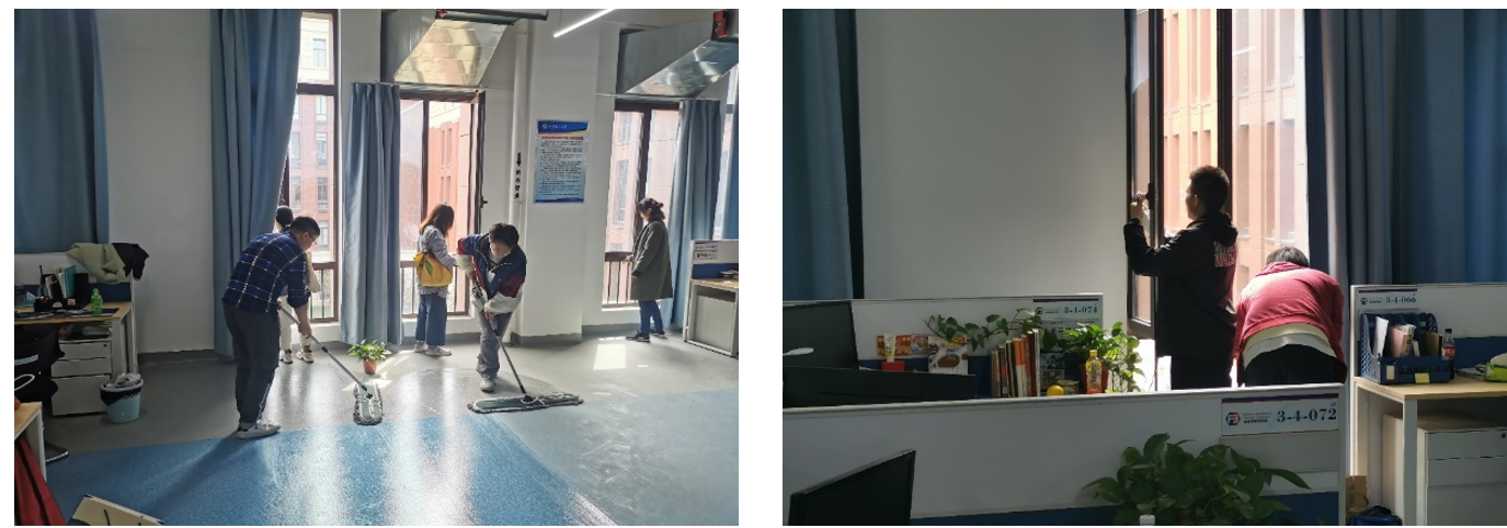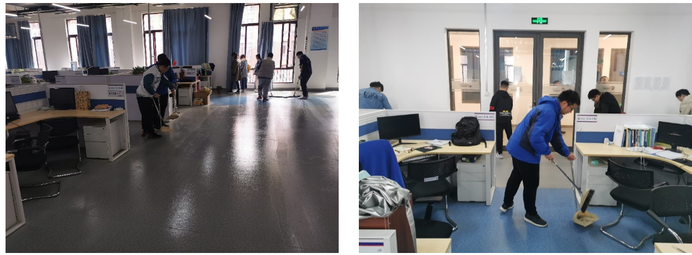 常新宇同学:在这次大扫除中同学们尽心尽力,在大家共同努力下,看着地面上的灰尘一点点被清扫干净,门上玻璃一扇扇的亮起来,心情也变得愉快起来了。在繁重的科研任务之外,进行适当的劳动有利于培养同学们的劳动意识,更好的传承中华民族勤劳的品质。我们应当在生活中通过一些小事来培养劳动的习惯,只有亲身经历,方知劳动不易,才能够真正的尊重劳动成果。通过自己的双手为大家提供一个干净舒适的科研环境,美化创新港是极有意义的!
