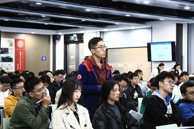 师兄首先对竞赛类型进行了分类,在参加竞赛之前大家需要对自己进行定位,参加什么样的竞赛,创新or创业,更偏向学术还是更偏向商业等等。师兄还告诉我们不能为了比赛而参加比赛,抱着这样的想法是注定走不远的,要做好长期作战的准备。在比赛前期的准备中,说的少一些,做的多一些。此外,因为大部分同学都是萌新,可能没有好的idea,就此赵师兄建议大家可以寻找已有的科研团队加入,以及和课题组的项目相结合,和同课题组的小伙伴儿组队。最后,赵师兄告诉大家要乐在其中,执行力比想法更重要!分享后,不少同学踊跃举手提问,就自己的疑惑点向师兄请教。
