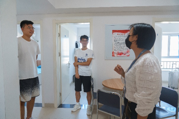 下午,威尼斯9499登录入口党委副书记张敏,辅导员杨江坤在新生宿舍走访慰问2021级研究生新生。在走访中,张敏副书记和杨江坤老师与大家进行了细致的交流。张敏书记亲切地询问同学们的报道和生活情况,多次叮嘱同学们:“有任何困难,一定要及时联系辅导员,学院会尽量帮助到每一位同学” 。学院的亲切慰问让新生们感受到了来自学院的温暖与关怀。