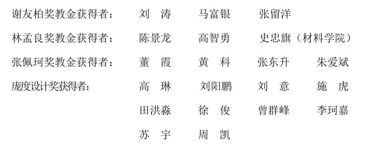 谢友柏基金获得者张留洋教授发表获奖感言:谢院士从事机械设计、摩擦学研究及教学工作六十余年,硕果累累。时至今日,仍然心系学院,给学院多次捐款成立基金,关心青年教师的成长。作为机械教师,传承谢院士、顾崇衔、史维祥等 50多位西迁老教授“德高为范,学高为师”的师德风范,争做建设“顶天、立地、惠民”一流机械学科的西迁新传人。学院也成立了青年教师联合会,鼓励青年教师参与教学和科研工作,促进院内及院际的跨学科、跨专业的交叉合作,提升青年教师教学科研能力和整体素质。未来的学院和学科建设的接力棒终究要交给青年一代,我们要继续发扬西迁精神,增强做交大机械人的志气、骨气、底气,不负时代,不负韶华,不负学校和学院对青年教师的殷切期望!