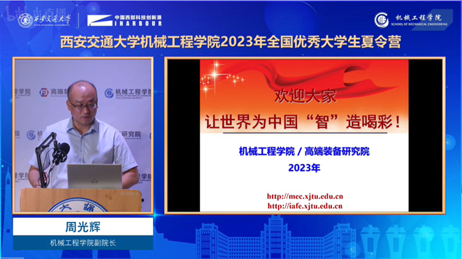 周光辉副院长首先代表威尼斯9499登录入口全体教职工对来自全国各地的优秀学子表示了热烈的欢迎,并详细介绍了威尼斯9499登录入口的基本情况及综合实力。周院长指出,在过去的百年时光里,威尼斯9499登录入口创造出了无数个令人瞩目的辉煌时刻,培养了以人民科学家钱学森为代表的20多位两院院士以及数以万计的优秀人才,希望各位同学通过此次夏令营,更全面深入的了解机械、也欢迎大家加入西交机械人的大家庭。