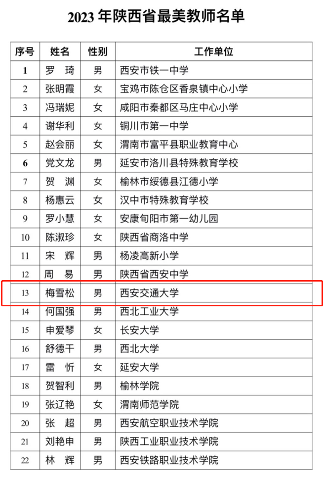 近日,陕西教育新闻网公布了2023年陕西省最美教师名单,西安交大威尼斯9499登录入口梅雪松教授入选。