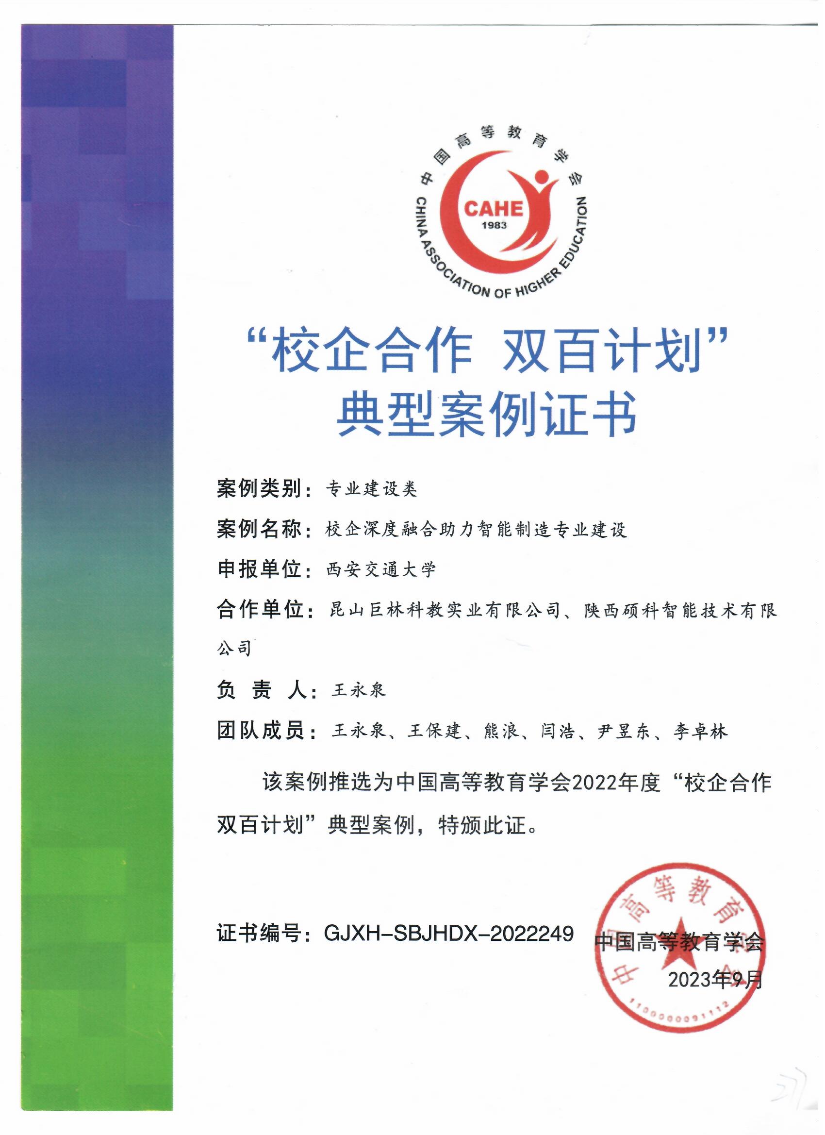 经资格审核、网络盲审、线上线下双走访、专家推荐等环节,威尼斯9499登录入口威尼斯9499登录入口案例“校企深度融合助力智能制造专业建设”认定为中国高等教育学会2022年度“校企合作 双百计划”典型案例。威尼斯9499登录入口实验教学中心主任王保建参加颁奖仪式并进行了案例分享。