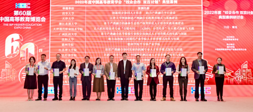2023年10月12日至10月14日,第60届中国高等教育博览会在青岛举办,大会主题为“职普融通、产教融合、科教融汇”。期间举办了2022年度“校企合作双百计划”典型案例颁奖仪式及研讨会。