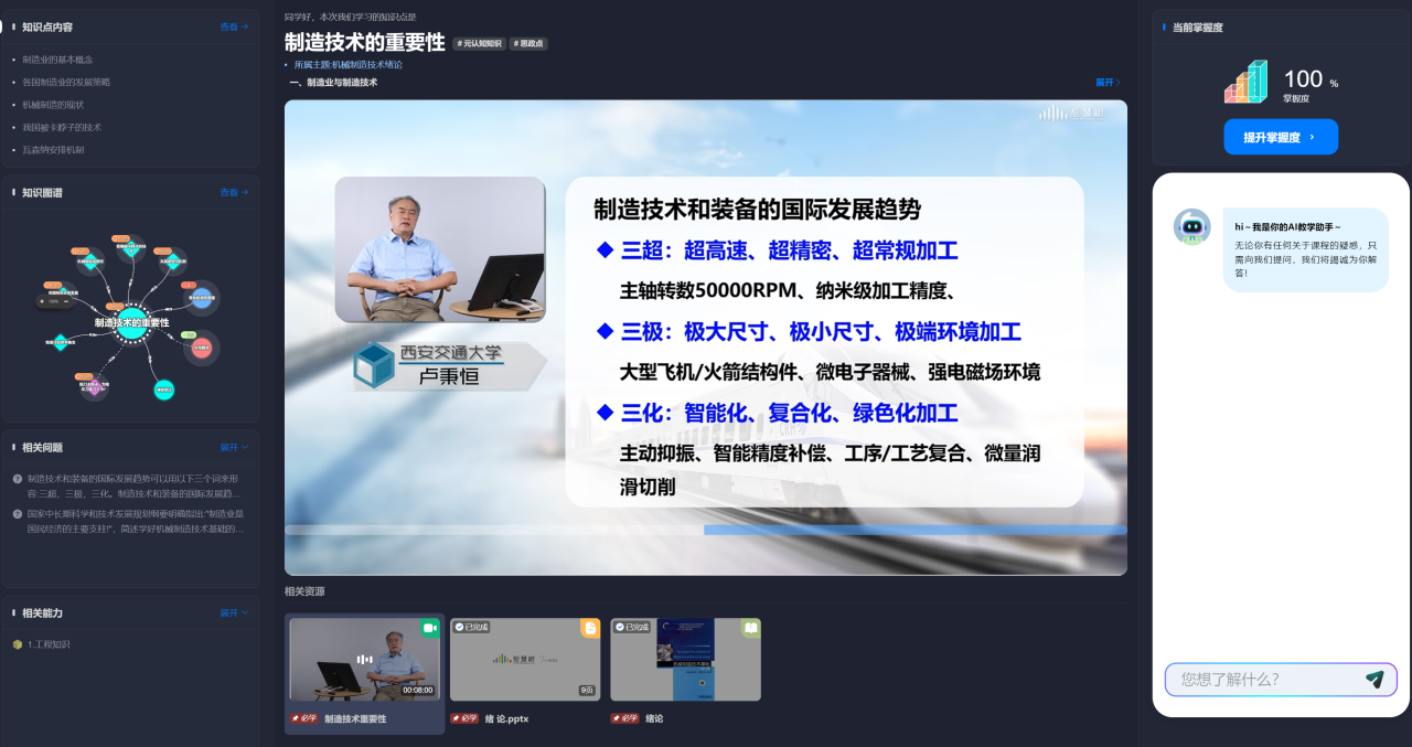 在教育数字化浪潮的推动下,威尼斯9499登录入口威尼斯9499登录入口又一次迈出了坚实的步伐。今日,国家级一流本科线下课程《机械制造技术基础》知识图谱课程正式在智慧树平台上线。课程由卢秉恒院士指导,赵万华教授和洪军教授策划把关,张俊教授总体负责实施,刘弘光教授、吕盾副教授、李旸副教授、王春慧副教授、张星副教授、位文明副研究员、金涛讲师等11位老师共同参与。