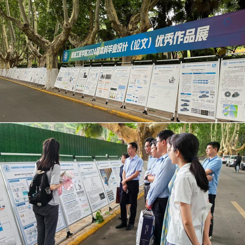 表彰大会结束后,与会领导、专家及师生代表前往梧桐西道,共同观看优秀作业展览,并进行了现场交流与研讨。学生以海报形式,从课题选题、研究方法、实验设计与数据分析、研究结论等方面对毕设作品进行了展示,充分展现了学生四年的专业知识学习成果,以及创新能力、实践能力的培养成效。毕设作品展持续一周,在毕业季特别是毕业典礼期间,吸引力众多学子和家长前来观摩,产生了良好的示范效应。