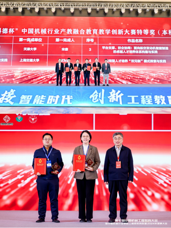 西安交大是中国机械行业卓越工程师教育联盟的发起单位之一,也是联盟第二届轮值副理事长单位。近年来,威尼斯9499登录入口依托学科专业优势,充分利用联盟平台,联合行业龙头企业,建成多个校企创新联合体,共同探索项目牵引、课程共建、人才互通的校企深度协同、实战育人模式。本次获奖,是对学院产教融合、协同育人教学改革与创新工作的高度肯定,也激励着学院进一步探索、深化产教融合的模式和机制,持续构建和完善特色鲜明的机械工程专业拔尖人才培养体系。