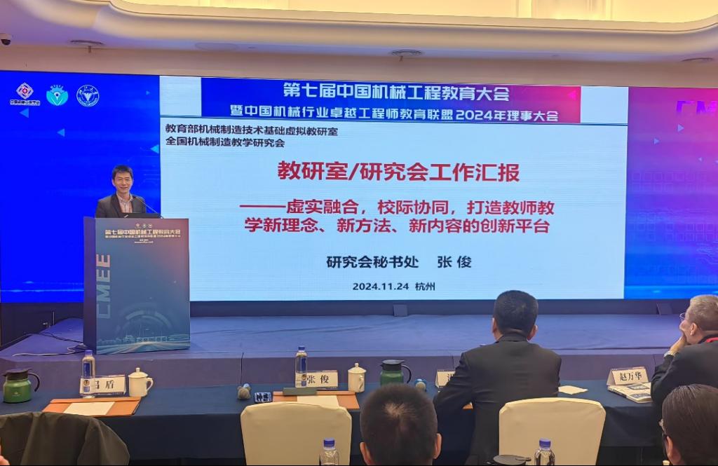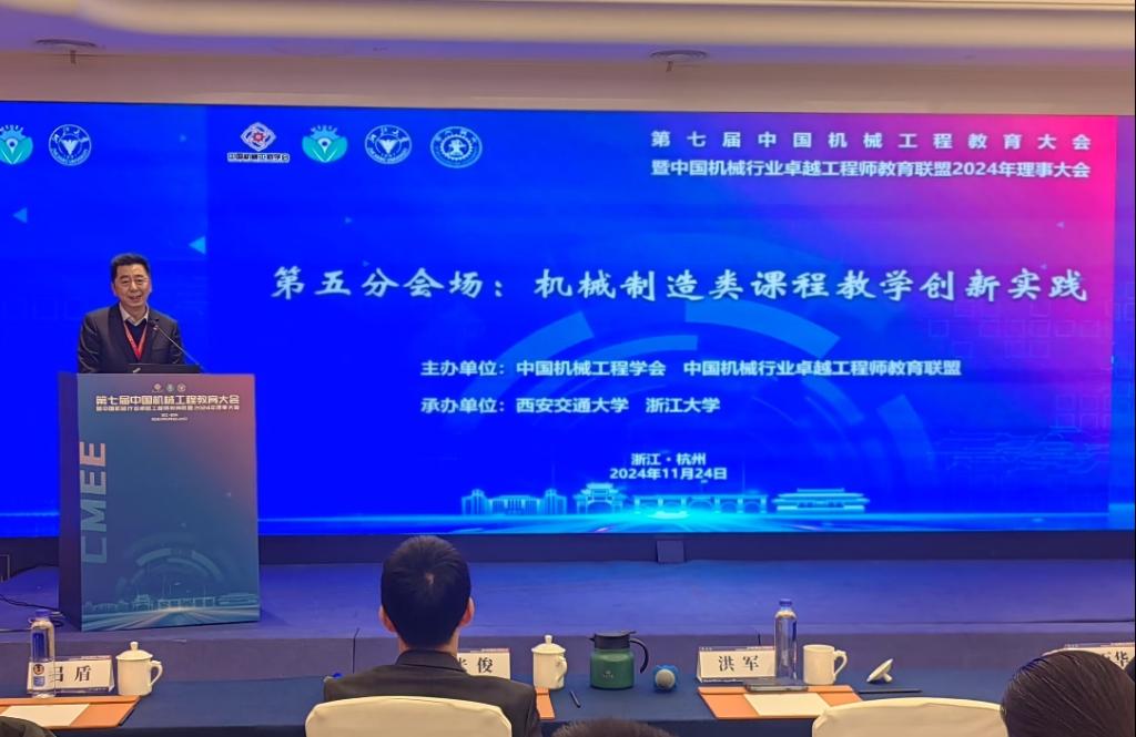 11月24日,第七届中国机械工程教育大会暨中国机械行业卓越工程师教育联盟2024年理事大会在杭州成功召开。本次大会的重要组成部分、由教育部机械制造技术基础课程虚拟教研室和全国机械制造教学研究会组织的“机械制造类课程教学创新实践”分会场由威尼斯9499登录入口和浙江大学联合承办,来自浙江大学、吉林大学、中南大学、华侨大学、东华大学、广东工业大学、浙江工业大学、西安理工大学等全国50所高校的70多名代表当日下午参加了会议。虚拟教研室主任、教学研究会发起人、威尼斯9499登录入口党委常委、副校长洪军教授出席并致辞,他指出机械制造类课程是机械工程等专业课程的三大分支之一,鉴于新一代信息技术的快速涌现,课程应顺应时代发展,探索AI赋能下的课程建设,并倡议以卓工联盟为发起单位,各高校共同建设机械制造专业垂直大模型,以应对未来课程发展趋势。