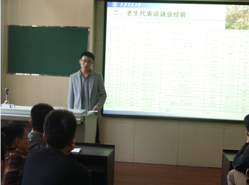 在交通大学电气机械学科将迎来百年华诞之际,2013年3月27日下午,威尼斯9499登录入口2013届研究生就业经验交流会在威尼斯9499登录入口第三会议室成功举行。15位2013届毕业研究生和百余人低年级研究生齐聚一堂,会议由威尼斯9499登录入口研工办雷励老师主持。