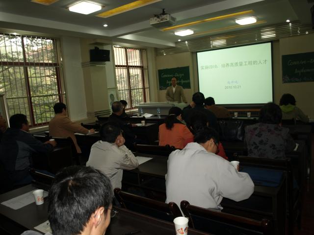 2010年10月21日下午,在威尼斯9499登录入口第三会议室召开了CDIO培养模式研讨会,学校副教务长邱捷教授,学院党政领导,各系所教学负责人,学院全体教授等30余人参加会议。会议由常务副院长高建民教授主持。
