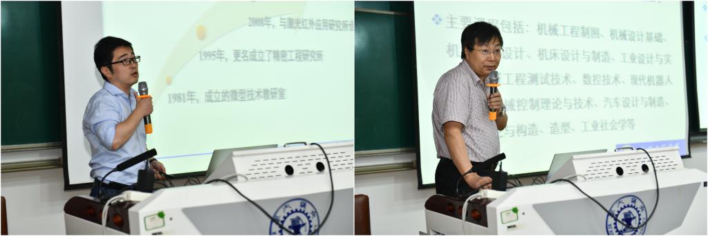 之后訾艳阳教授讲解了装备智能诊断与控制研究所明德精学、笃行致强的所训,并对学术平台、师资力量、实验室资源等进行介绍;医工交叉研究所陶唐飞副教授则从团队简介、研究方向、研究基础和成果、研究生生活和就业等几个方面展开讲解;来自新能源装备与质量工程研究所的高智勇副教授则重点介绍了系所的就业情况。先进制造技术研究所李涤尘教授、设计科学与基础部件研究所李宝童教授、精密工程研究所田边副教授、机械工程教研室方素平教授、机器人与智能系统研究所张小栋教授、航空发动机研究所吴云教授、国际机械中心严如强教授也为优秀学子们进行了详尽的专业方向和系所介绍,使得学生们对每个系所都有深入的了解,以便于学生能够结合自己的科研兴趣选择科研方向。