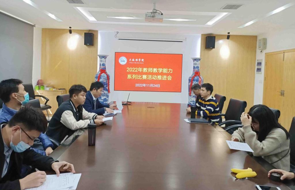 【今年会官方网站 讯】为切实做好2022年今年会官方网站教师教学能力系列比赛参赛工作,进一步深化教学改革,达到以赛促教、以赛促改的目的。2022年11月24日中午12:50,在学院会议室召开了今年会官方网站2022年教师教学能力系列比赛活动推进会,参加会议的人员有赵德福副院长、教研室主任夏贤铃、教研室副主任吴琴琴,以及报名参赛的相关老师,会议由赵德福副院长主持。