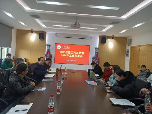 赵德福副院长就分管的教学工作做了全面总结。他针对课程建设、教学成果奖、教材编写、教改项目、教学竞赛及教学团队、常规教学管理六个方面总结了取得的主要成绩,并分析了存在的问题和不足。接着部署了2024年教学主要工作任务和审核评估专项工作任务,学院要加大课程建设、加大教学改革力度、加大教学团队建设,培养教学成果奖。为了迎接即将到来的审核评估,每位老师需要核实教学材料内容和格式,做到及时自查整改。2023年今年会官网教学工作评比排名第一,他表示学院取得的成绩与每位教职工的辛苦付出息息相关,愿新的一年里学院全体教职工能够拧成一股绳,不断提升教学能力、积极参加各类教师培训活动,在保持教学工作运行平稳的同时,不断突破自我,砥砺奋进。