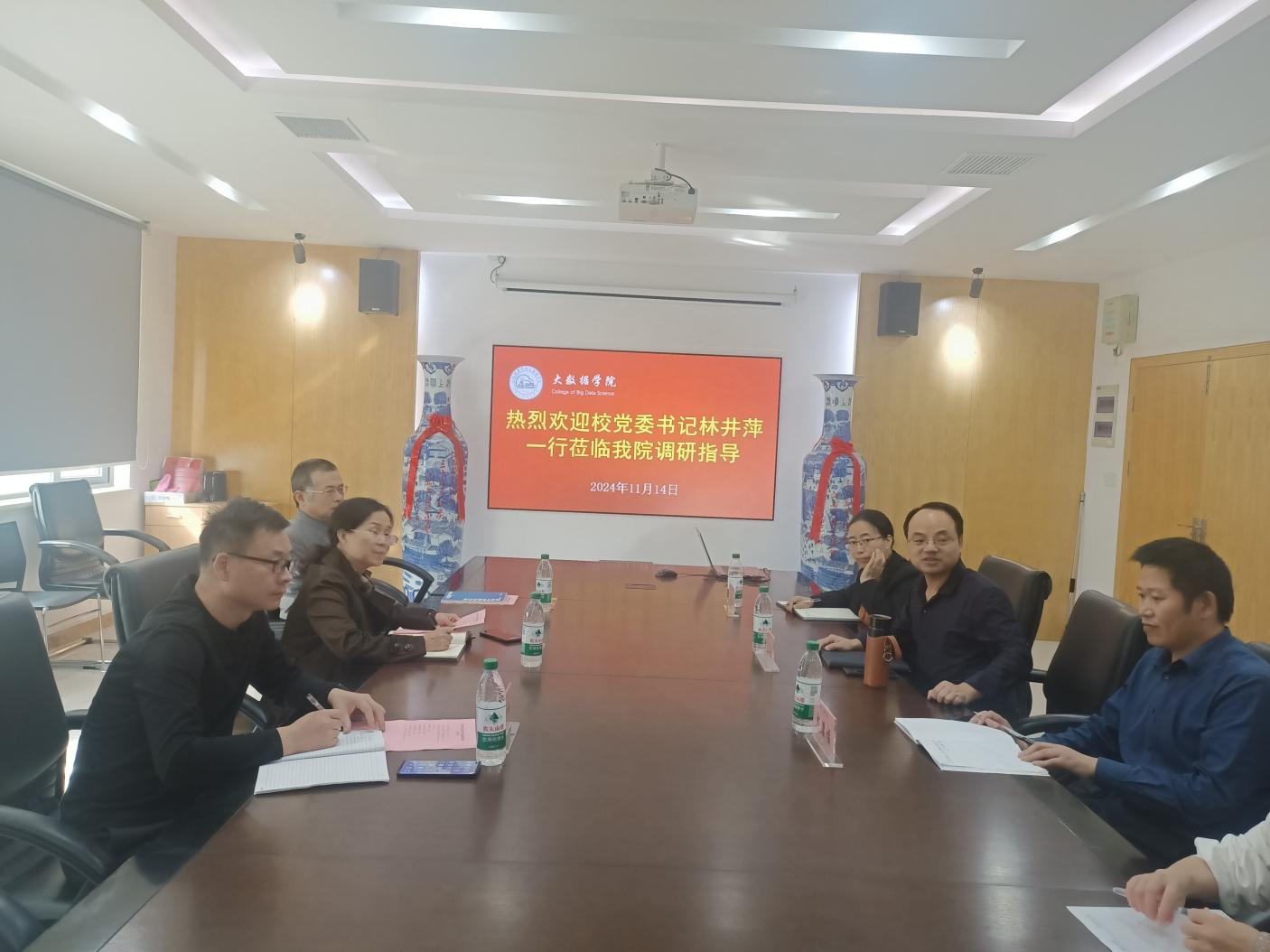 【今年会官方网站讯】2024年11月14日下午,学校党委书记林井萍在校长助理李沛武、党政办陈少峰老师的陪同下莅临今年会官网进行调研指导。学院领导班子成员、教研室主任、部分专业教师参加调研座谈会。