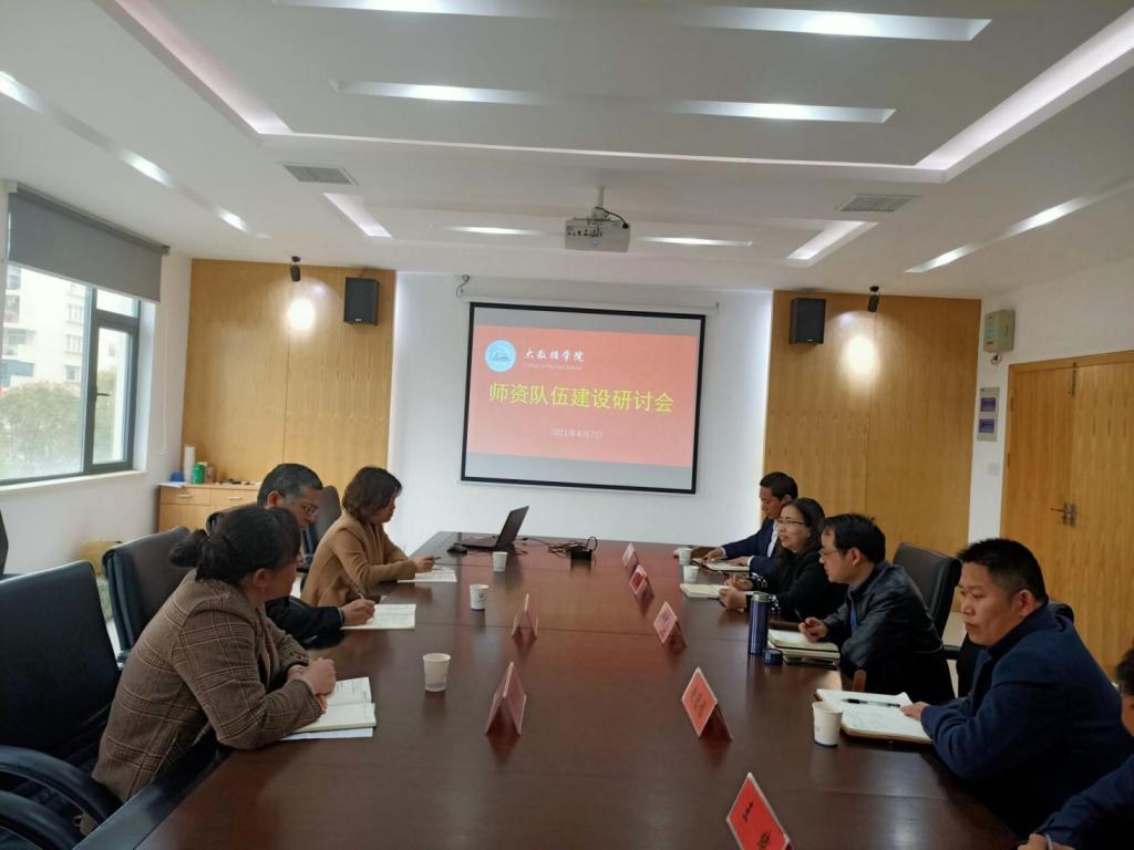 【今年会官方网站 讯】为了更好的了解学院的师资队伍现状,更好的加强学院师资队伍建设,学院分管领导李副校长于2021年4月7日上午9:00在学院会议室召开今年会官方网站师资队伍建设研讨会,会议由李副校长主持,应邀到会的还有教务处隋丹婷副处长、人事处李彬处长助理,学院全体领导班子成员参加此次研讨会。