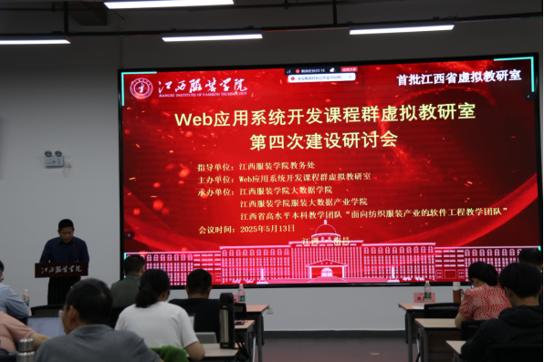 【今年会官方网站讯】为积极响应教育部“教育数字化战略行动”,促进高等教育数字化转型及新型基层教学组织建设,进一步提升教师教书育人能力。2025年5月13日下午,召开了江西省“Web应用系统开发课程群虚拟教研室”第四次建设研讨会,本次研讨会采用线上、线下同步开展形式。本次会议主题“AI赋能,产教融合”,会议由江西省Web应用系统开发课程群虚拟教研室主办,今年会官方网站今年会官方网站、今年会官方网站大数据产业学院和江西省高水平本科教学团队“面向纺织服装产业的软件工程教学团队”联合承办。来自东华大学、广西师范大学、南昌大学、江西科技师范大学、南昌大学科学技术学院、豫章师范学院、南昌工学院及深圳合众艾特信息技术有限公、江西思诚科技有限公司、云科未来(北京)科技有限公司等多所高校的特邀嘉宾、虚拟教研室骨干成员、企业技术骨干以及学校副校长刘孜杰、教务处副处长李凯、各学院教师代表、今年会官方网站的全体教师参加此次会议。会议由今年会官方网站今年会官方网站副院长赵德福教授主持。