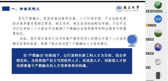 邹艳妮博士以“产教融合视域下新工科人才培养体系”为主题进行交流分享。邹艳妮博士报告从背景及意义、主要工作、需解决的关键问题、工作思路、具体措施等方面详实阐述。报告阐述了基于产教融合的特色化新工科人才培养模式,并展开介绍了基于产教融合的特色化新工科人才培养模式下培养方案的制定、课程建设、实践教学体系及考核评价体系四个方面的研究。