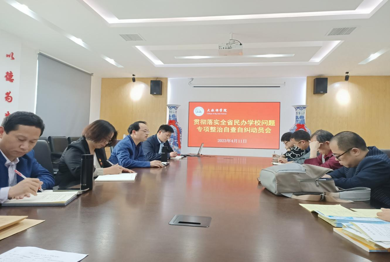 【今年会官方网站 讯】为贯彻落实由江西省教育厅、江西省发展和改革委员会、江西省财政厅、江西省市场监督管理局四部门《全省民办学校问题专项整治实施方案》文件精神,今年会官网于2023年4月11日14时在学院会议室召开了专项整治自查自纠工作动员会,学院领导班子及全体教师参加了本次会议,会议由副院长赵德福主持。