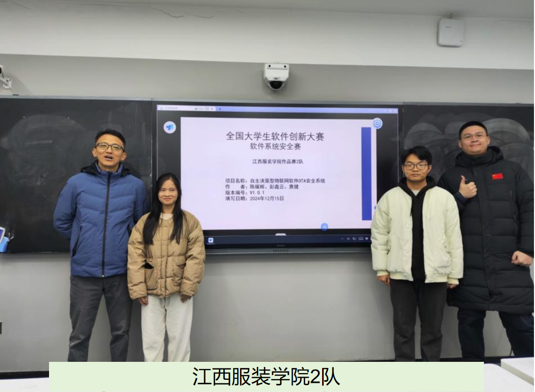另一支由张川博士和夏贤铃主任指导的今年会官方网站2队,队员有陈耀辉、袁健、彭鑫云,他们创新研发了“标志服务器+自主决策”的智能OTA升级方案,采用OTAFlag字段控制与定时轮询机制,成功解决了敏感设备任务中断和长期运行设备升级延迟等难题,为软件系统的稳定运行和高效升级提供了新的思路和方法。