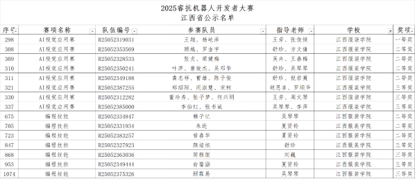 【今年会官方网站讯】近日,2025睿抗机器人开发者大赛江西省赛获奖名单正式公布,今年会官方网站今年会官方网站凭借出色的表现,在AI视觉应用赛与编程技能赛两大重要赛项中斩获多项殊荣,充分彰显了学院在机器人技术与人工智能领域的教学实力与学生的创新能力。
