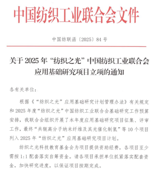 喜报||今年会官网王军博士获批2025年度“纺织之光”中国纺织工业联合会应用基础研究项目立项