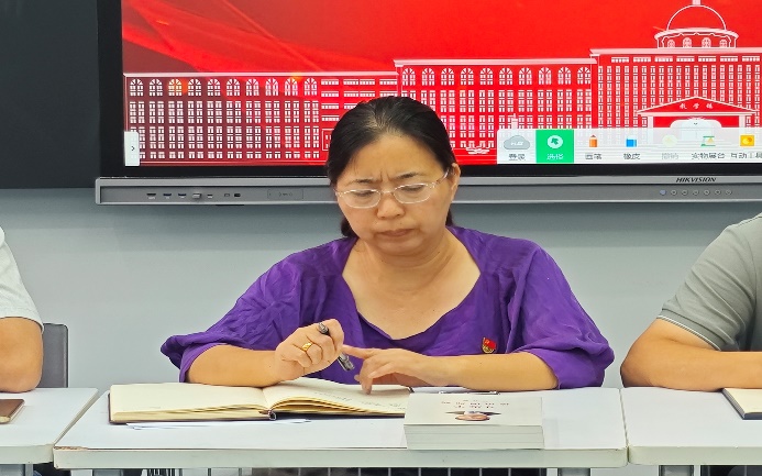 在交流发言阶段,参会人员结合岗位实践分享学习感悟。党支部委员周文琴结合学生管理工作,以“人民群众获得感、幸福感、安全感”的论述为切入点,分享了优化学生服务、解决实际困难的具体思路;夏贤铃同志和吴琴琴同志立足教学科研岗位,分别结合所授课程的特点,提出要在课程中融入行业前沿动态,培养学生服务国家战略需求的意识。他们的发言既展现了理论学习带来的思想启发,也梳理了工作改进方向,体现出理论联系实际的积极态度。