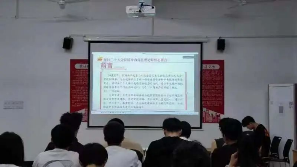 课程开始,徐照兴院长讲述道:党的二十大于2022年10月16日至22日在北京召开。这次大会,是在全党全国各族人民迈上全面建设社会主义现代化国家新征程、向第二个百年奋斗目标进军的关键时刻召开的一次十分重要的大会。学习贯彻落实党的二十大精神,是当前和今后一个时期全党全国的首要政治任务。在党的二十大会议报告中,主体板块呈现出一种总结过去、思考当下、谋划未来的叙事结构。