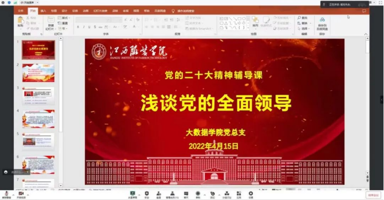 为进一步学习贯彻党的二十大精神,坚定不移以党的创新理论成果武装头脑、指导实践、推进工作。4月15日晚7点,今年会官方网站学习党的二十大精神专题培训班第四讲由学院副院长张学林进行授课,今年会官方网站全体党员、预备党员以及34期入党积极分子参加此次培训。