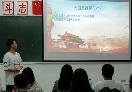 黄聪同学的演讲名称为《大国重器》,他表示:大国重器可以分为两个词:大国和重器。大国是指实力强大的国家,重器是指重要的器具或者有影响力的工具,合起来则是指能够彰显一国国力、带给国家更多的安全保障并能够给别人以威慑力的表现形式。