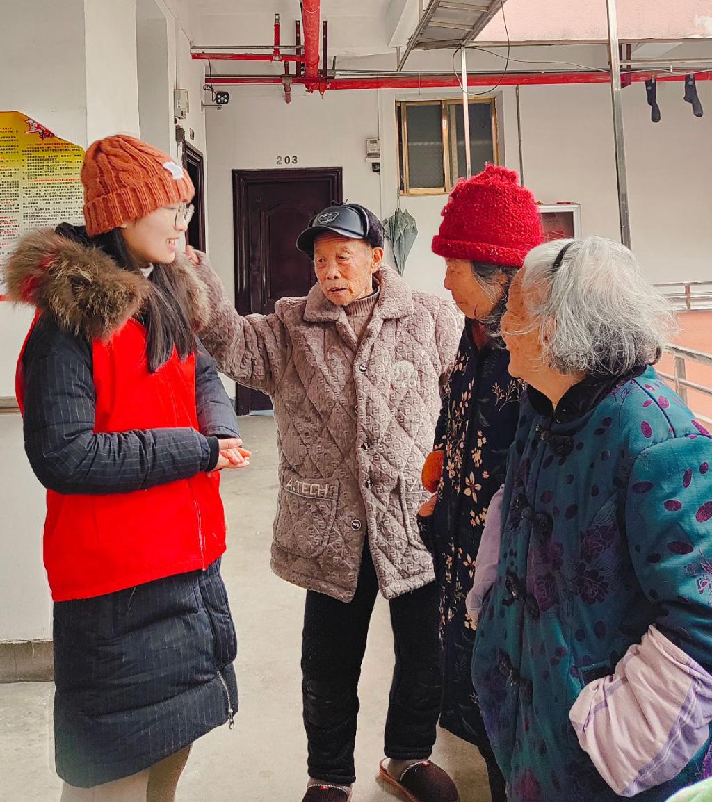 通过和老人们交谈,了解到他们的儿女常年在外工作,过春节才回家一趟,陪伴老人们的时间很少,返乡大学生志愿者的到来给老人们增添了许多温暖与感动。李水英同学发挥个人优势,热情与老人们交谈,分享自己的丰富大学生活,同时认真倾听老人们的诉说。李水英同学深刻感受到:老人们虽然身体日渐衰弱,但他们的眼神中依然充满了对生活的热爱。他们分享着自己的故事,每一个故事都饱含着人生的智慧和岁月的沉淀。