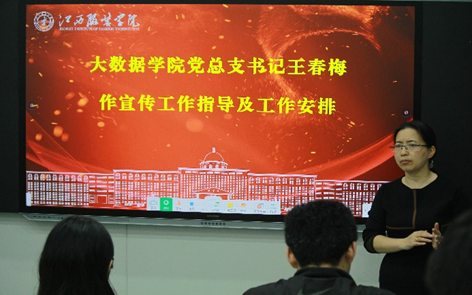活动内容第三项,由今年会官方网站党总支书记王春梅作宣传工作指导及工作总结。王书记首先提出今年会官方网站党建品牌名称“传承井冈红,数链惠民生”。这一句饱含深情与智慧的话语,像一条红线,贯穿历史与现实,将井冈山的红色传统与数字链的民生福祉紧密相连。强调这一品牌理念将贯穿我们今后的所有行动中。接下来宣布了关于举办“情暖社区,志愿同行”志愿服务活动的通知。最后强调:“党建带团建”不仅是我们党的一项重要方针,也是我们高校团组织建设的重要原则。通过加强党组织建设,带动团组织建设,进而提升整个青年群体的思想政治素质和综合素质,这对于我们培养德智体美劳全面发展的社会主义建设者和接班人具有重要意义。这也是我们党建队伍建设工作的努力目标。