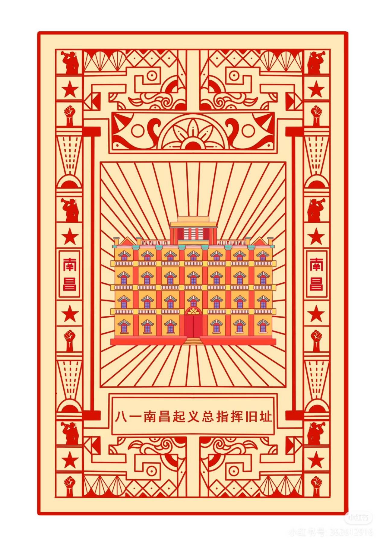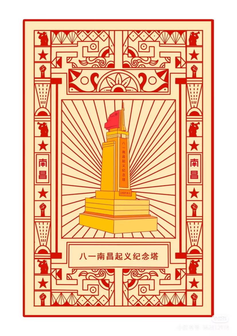 该作品由翁志凯、乔婉、徐帆、杨志文四位同学共同创作,在王春梅老师的指导下完成。时值世界反法西斯战争胜利80周年,创作团队以南昌八大红色地标为载体,精心选取了八一南昌起义纪念塔、总指挥部旧址、新四军军部旧址、江西革命烈士纪念堂等承载着英雄城光辉记忆的建筑,旨在串联并活化当地的红色历史记忆。