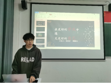 班会伊始,各班级主讲人以提问的方式展开了主题班会,从思考过去自己是否优秀的问题到是否渴望成为更好的自己,主讲人在大家思考之际,进一步的讲解了在大学期间如何成为更好的自己,为此提出了三个认清概念,并深入展开讨论了此次主题班会的重点:学风。