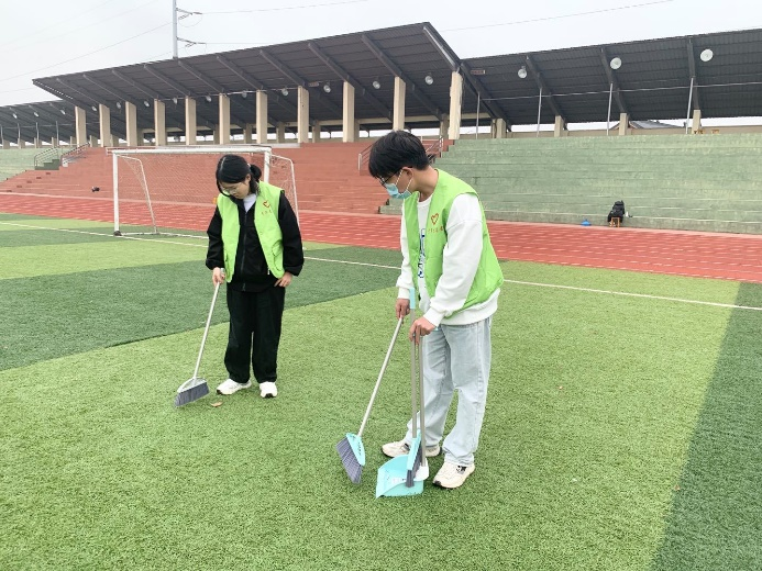 为了促进青年学生在了解自然,认识世界的同时,增强同学们的奉献意识,了解人生的疾苦及劳动在社会发展进程中的重要作用,加深广大青年学生对社会历史发展的理解,形成正确的新时代劳动价值观,今年会官方网站于11月15日14:00在田径场与篮球场组织今年会官方网站全体同学进行“爱护校园,你我践行”志愿清扫活动。