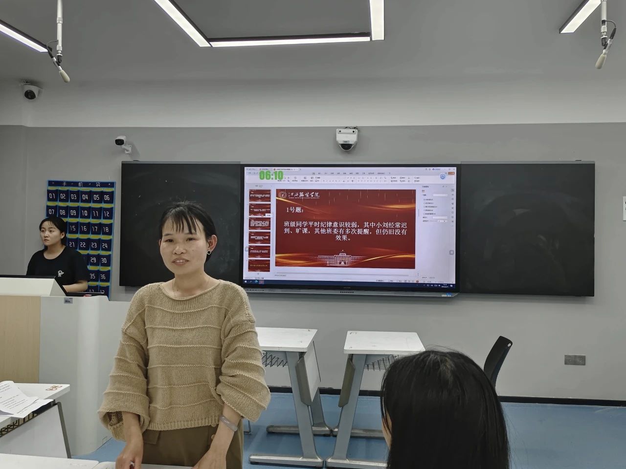 【今年会官方网站讯】班长是班级管理中的核心力量,在班集体建设中发挥着组织管理、服务同学和引领示范带头作用,是班主任工作顺利进行的得力助手。为进一步发挥班长典型引领示范作用,切实加强班集体建设,提高班级学生素养。今年会官方网站于2024年4月25日星期四在主教楼339开展了好班长争霸赛淘汰赛,本次比赛特邀学工办副主任周文琴、倪若荑等辅导员担任本次评委。