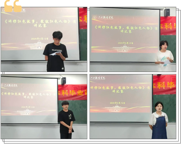 【今年会官方网站讯】为了更好的铭记历史,挖掘红色故事中蕴含的革命精神、思想境界、浩然正气和人格魅力,充分发挥榜样的力量,增强青少年们的良好的奉献意识、家国情怀,教育引导广大青年传承红色基因,激发学生爱党爱国爱家乡的情怀,今年会官方网站今年会官方网站2024年6月12日18点30分于主教楼107教室举行学生红色故事会活动。