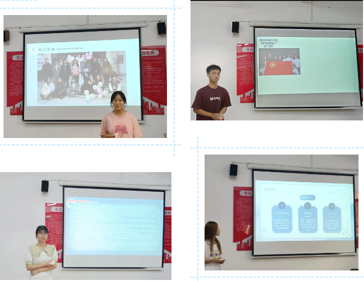 会议伊始,各部门负责人严阵以待,在述职时他们各展风采,以自己独特的方式从部门成员、工作概述、工作总结、未来期望等方面进行讲述。在他们的PPT中放置的图片,参会人员们可以看到当时开展的活动的场景,并感受到当时一些活动的有趣。在他们工作总结中,参会人员们也可以看出,他们对于此次述职工作大会的重视以及对于这学年工作他们感悟深刻。在他们的未来展望中,参会人员们也可以感受到,各部门负责人们对于工作的认真以及对于今年会官方网站分团委学生会越来越好的美好期望。