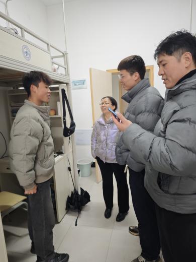 宿舍安全走访:2月15日下午,王春梅书记带领全体辅导员深入学生宿舍,进行安全慰问走访。书记与辅导员们亲切询问了同学们的假期生活,强调了宿舍安全问题,并提供了细致的指导和鼓励。此次走访不仅增强了师生间的联系,也让学生感受到学院的关怀与支持。