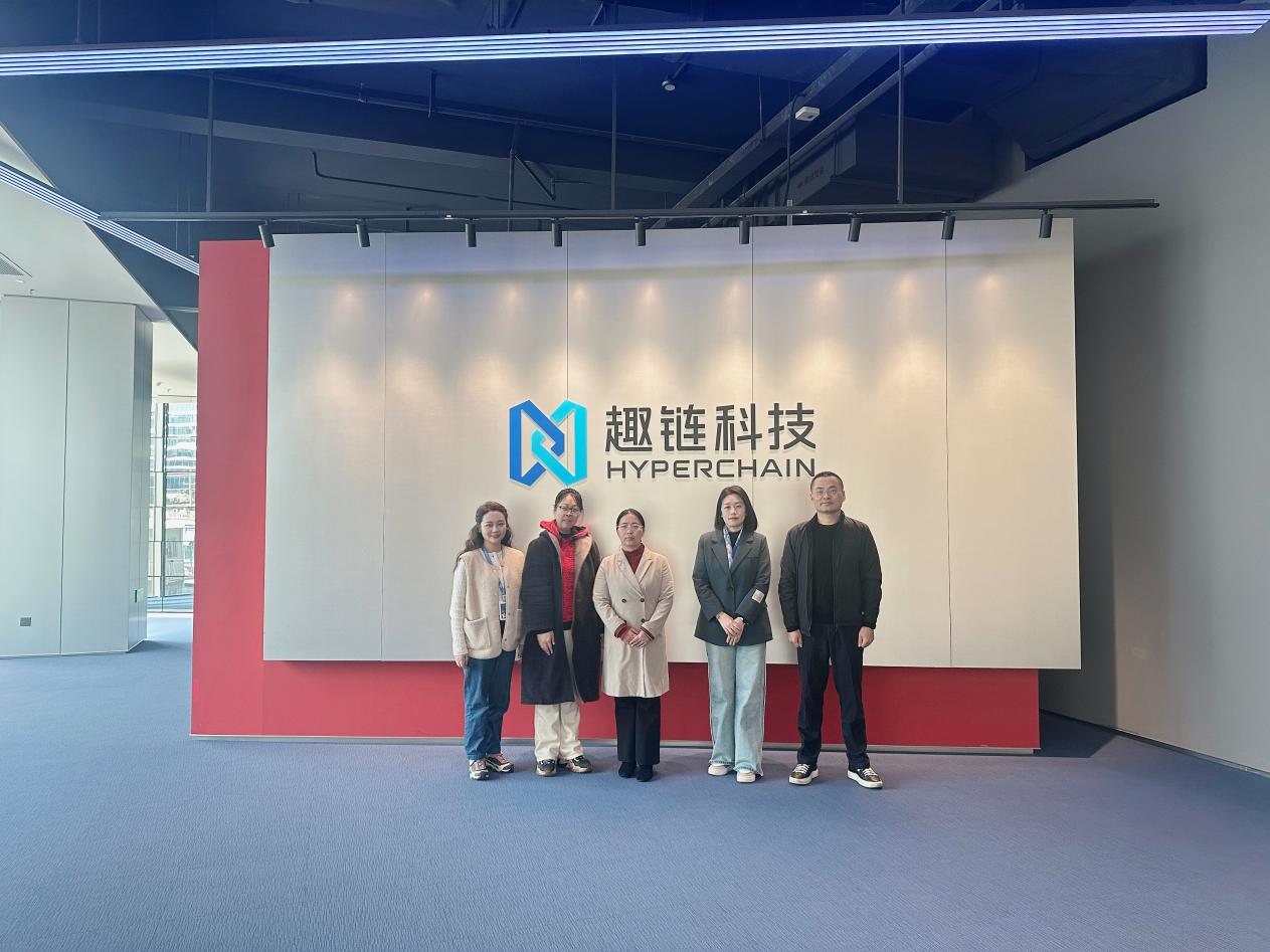 在杭州趣链科技有限公司,王书记一行实地走访参观了企业技术研发中心与数字展示平台,详细了解企业在区块链领域的技术领先与业务布局。双方围绕区块链行业发展趋势、应用市场、人才培养等核心议题展开深度交流,就探索校企协同育人路径达成共识。
