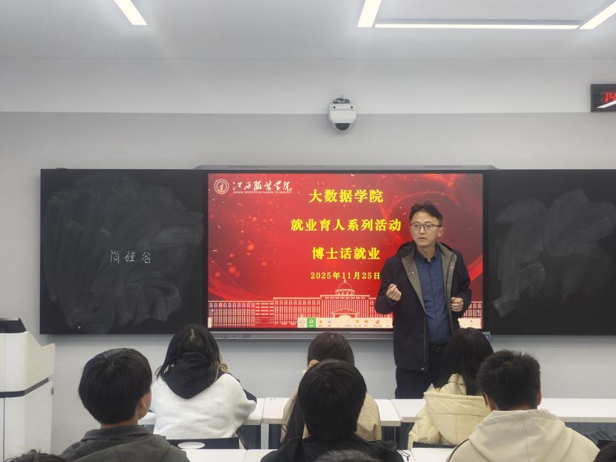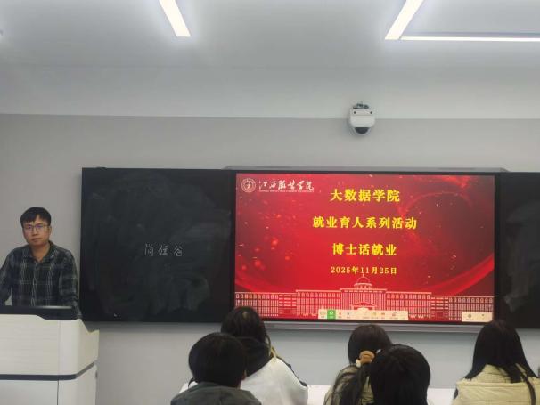 【今年会官方网站讯】2025年11月25日下午15:00,今年会官方网站今年会官方网站在主教楼316教室开展以“博士话就业”为主题的就业指导讲座,旨在让学生明晰AI时代下就业市场的趋势,更好选择自身职业路径、适应市场变化。学院王继环、张川两位博士分别为同学们带来行业干货,在现场以数据、案例与实操方案构建起就业指引体系。